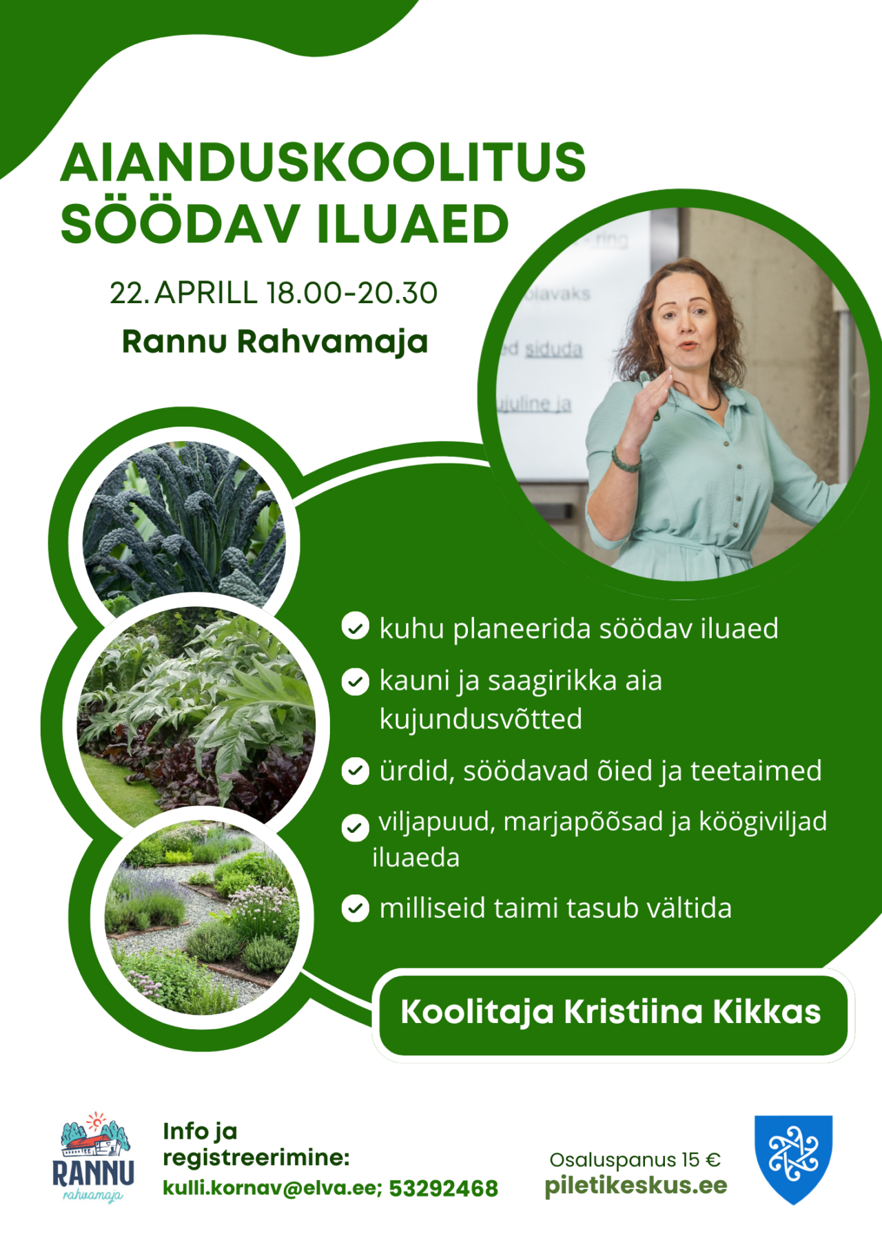 See koolitus sobib nii algajale rohenäpule kui ka kogenud aiandushuvilisele, kes otsib uusi inspiratsiooniallikaid.