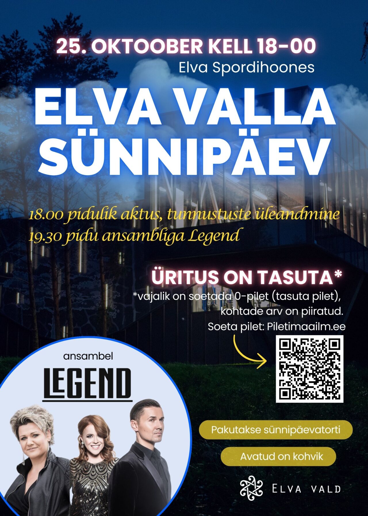 Elva vald tähistab oma 7. sünnipäeva 25. oktoobril 2024 suurejoonelise peoga Elva Spordihoones.