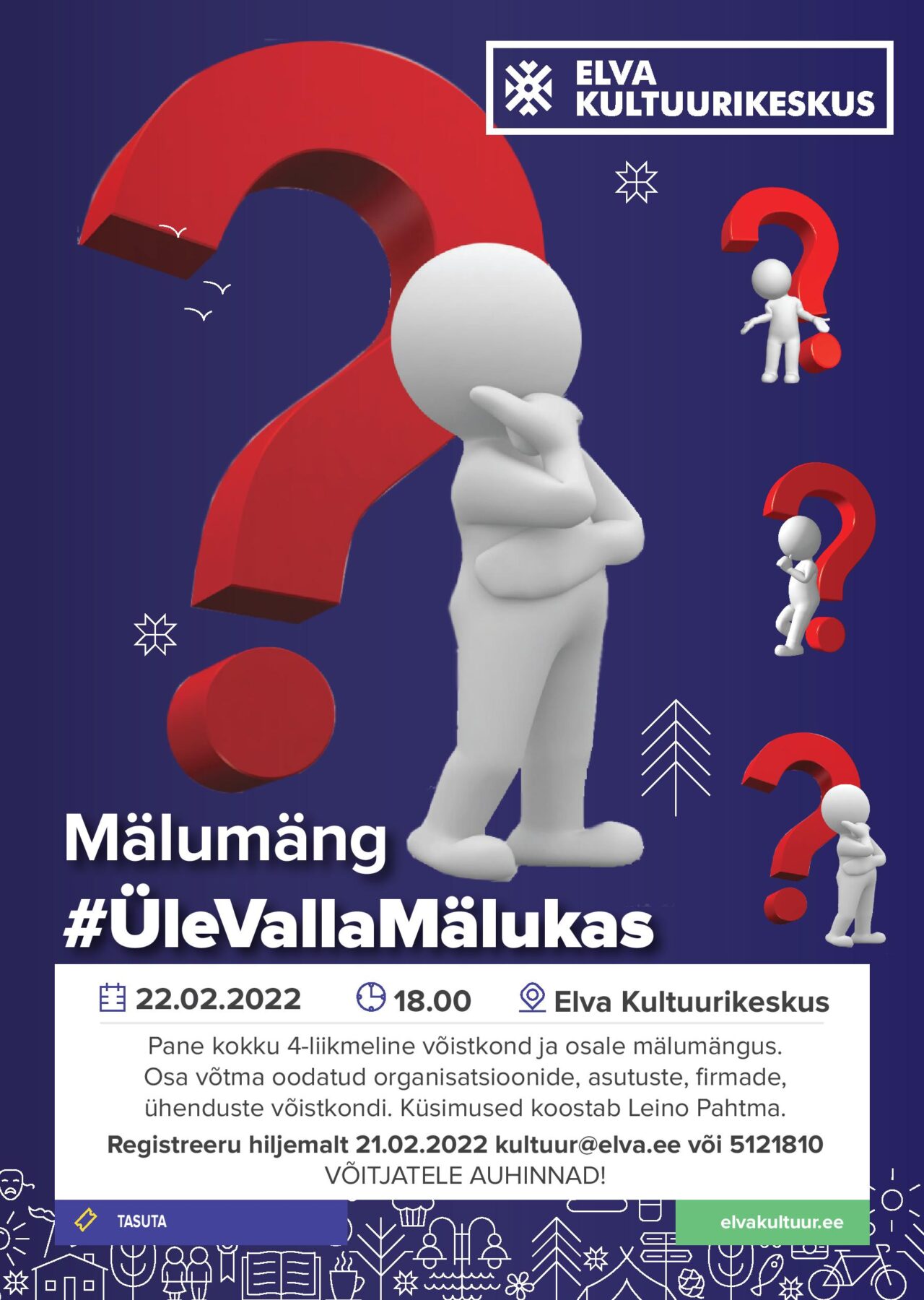 Registreeru hiljemalt 21.02.2022 kultuur@elva.ee või 5121810