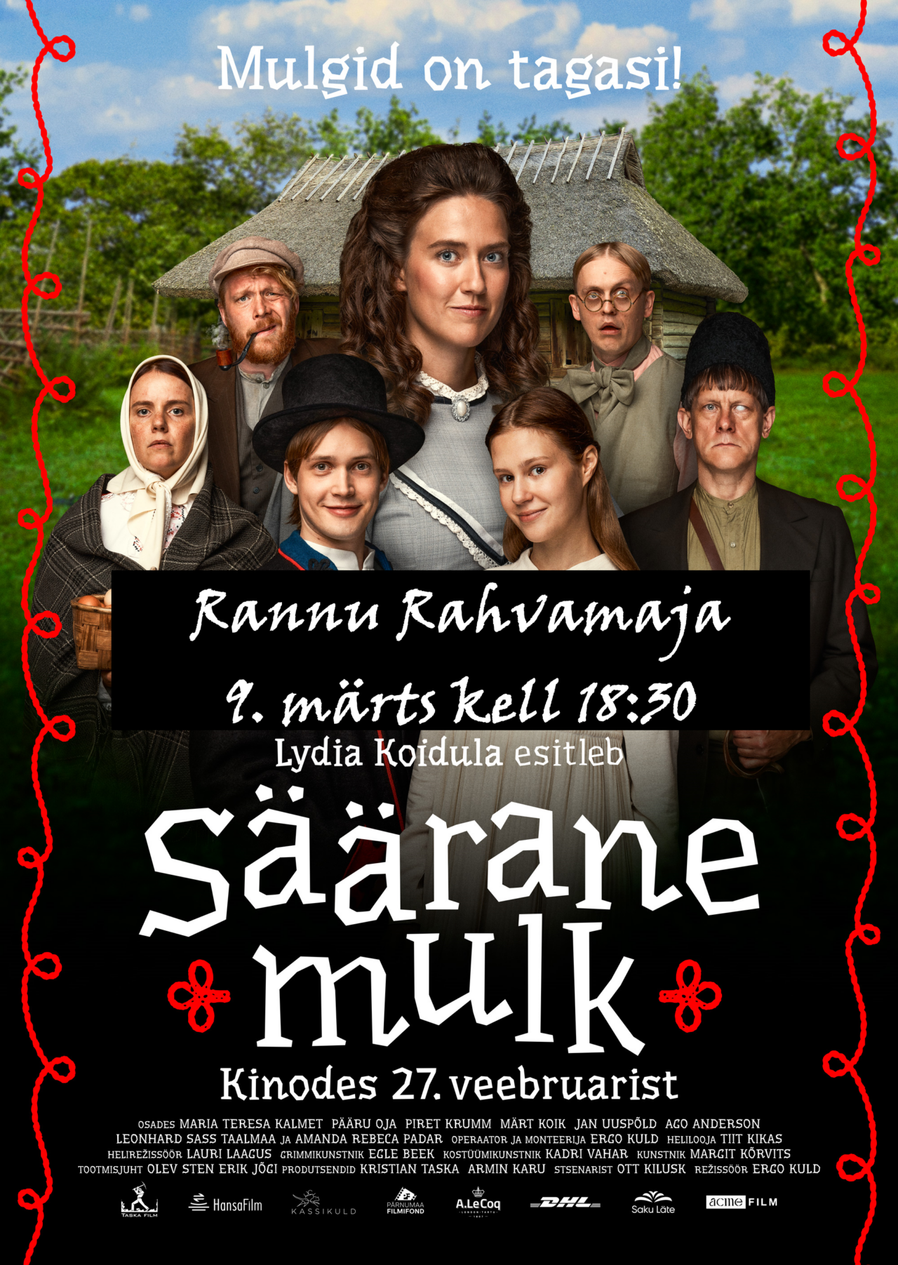 Peaosades astuvad üles Maria teresa Kalmet Koidulana, noori armastajaid Maiet ja Märti mängivad Amanda Rebeca Padar ja Leonhard Sass Taalmaa. Ennu rollis on Märt Koik, isa Peeter on Pääru Oja ja ema Anne Piret Krumm. Lisaks teevad kaasa Jan Uuspõld Kure onuna, Ago Anderson Papa Jannsenina, Raimo Pass Kreutzwaldina jt.