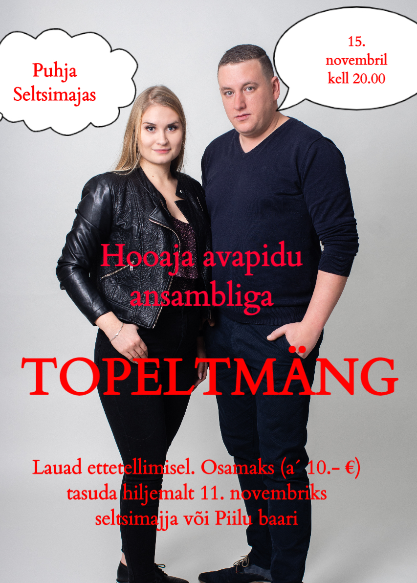 Lauad ettetellimisel. Osamaks (a´10.-€) tasuda hiljemalt 11. novembriks seltsimajja või Piilu baari.