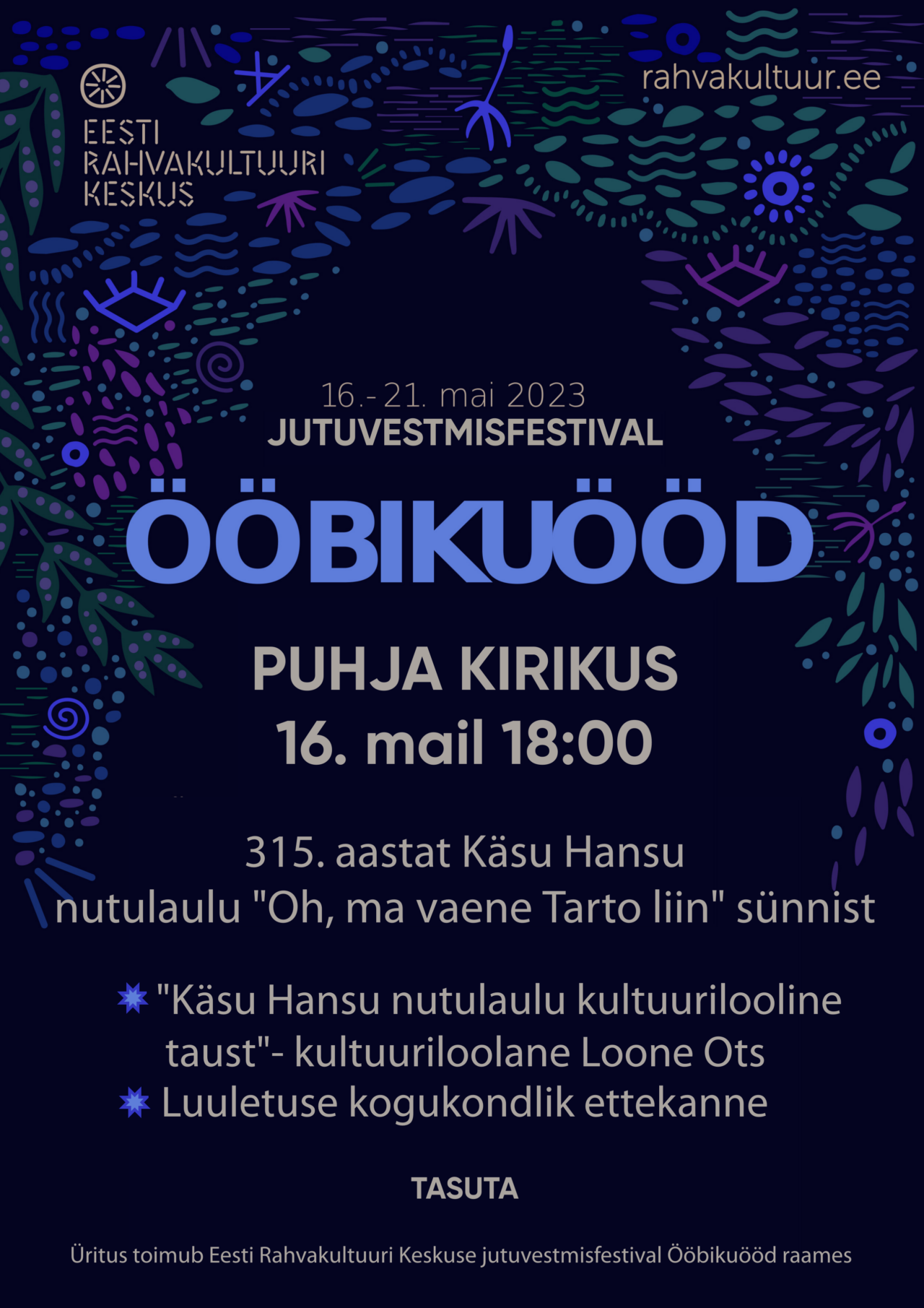 Festivali raames tähistame Puhja kirikus 315. aastat esimese eesti soost luuletaja Käsu Hansu nutulaulu “Oh, ma vaene Tarto liin sünnist”.