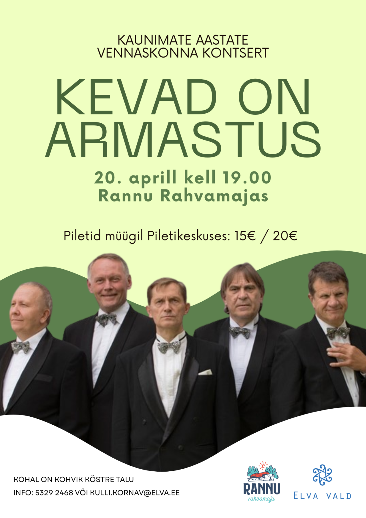 Piletid -20% koodiga KEVAD20 kuni 8. märtsini (k.a). 📍 20. aprill – Rannu Rahvamaja