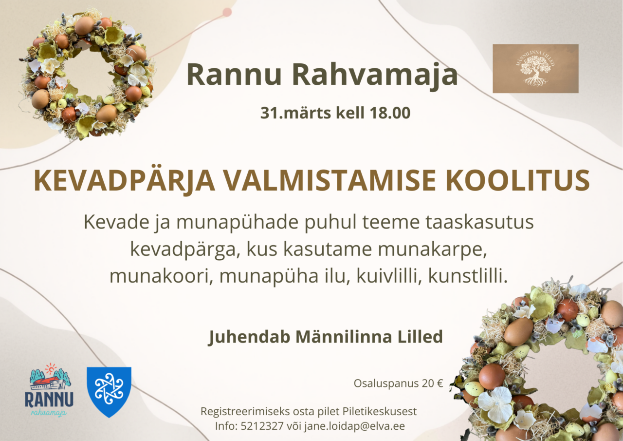 Kevade ja munapühade puhul teeme taaskasutus kevadpärga, kus kasutame munakarpe, munakoori, munapüha ilu, kuivlilli, kunstlilli.