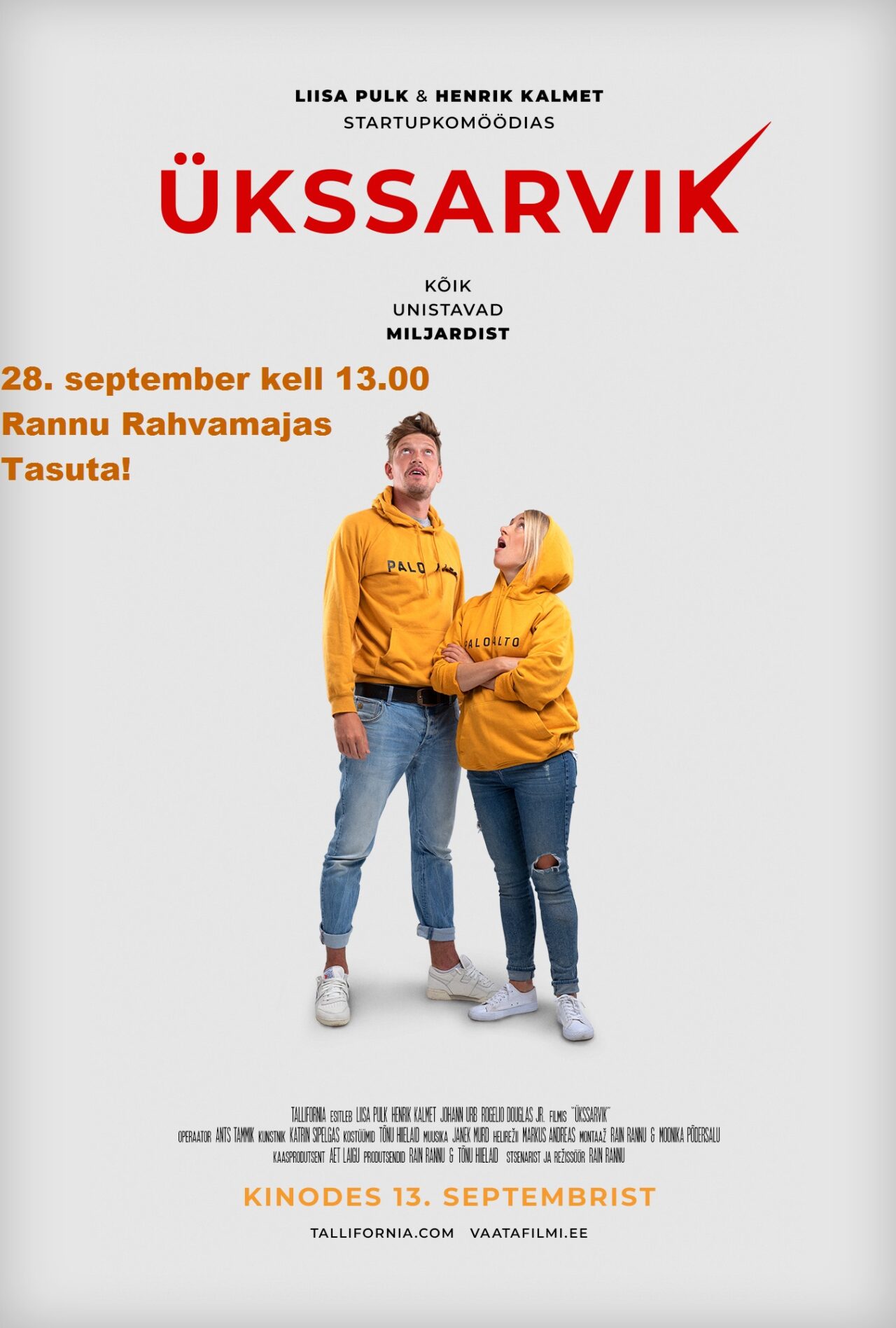 Startupkomöödia ÜKSSARVIK jutustab Liisa Pulga ja Henrik Kalmeti poolt kehastatud kahe noore iduettevõtja teekonnast “kodugaraažist” maailma tehnoloogia mekasse Silicon Valleysse. Tempokas film annab autentse ja värvika pildi tehnoloogiafirma tegemise võlust ja valust, usaldamisest ja unistamisest, hullusest ja hulljulgusest… inspiratsiooniks mõistagi kõik maailma Steve Jobsid, Bill Gatesid, Mark Zuckerbergid ja Elon Muskid. Kõik unistavad miljardist…
