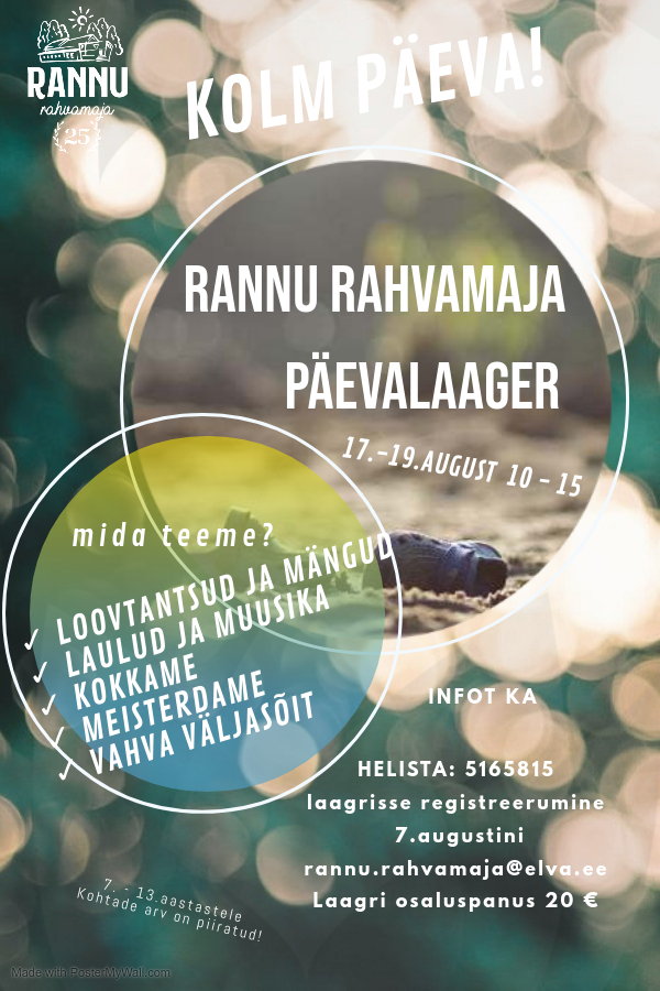 Rannu Rahvamaja päevalaager 17.-19. august 10:00-15:00.