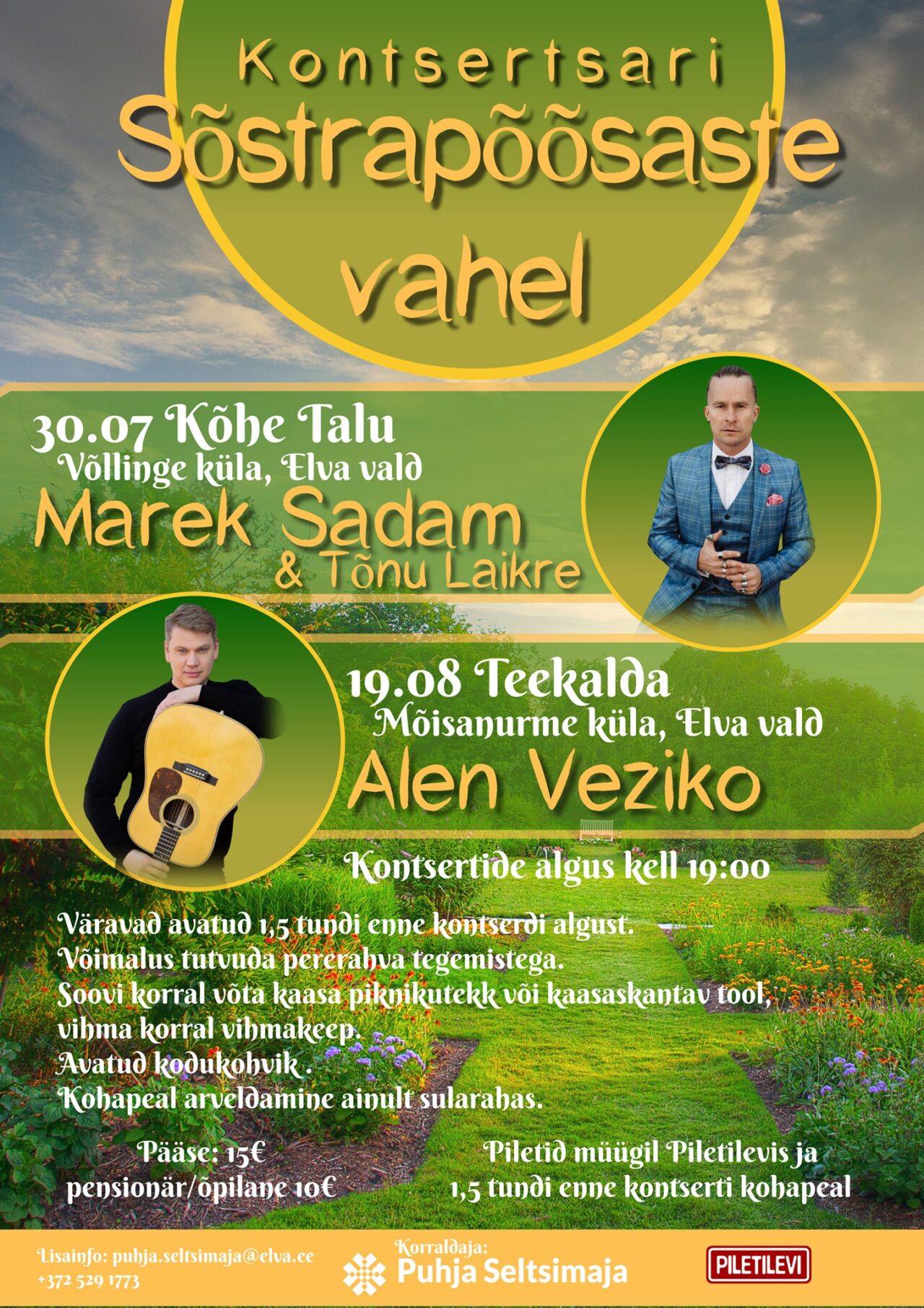 Suve teine kontsert toimub 19.08 Teekalda Puhketalus (Mõisanurme. Elva vald). Laval Alen Veziko kavaga “30. aastat Eesti iseseisvuse taastamisest”.