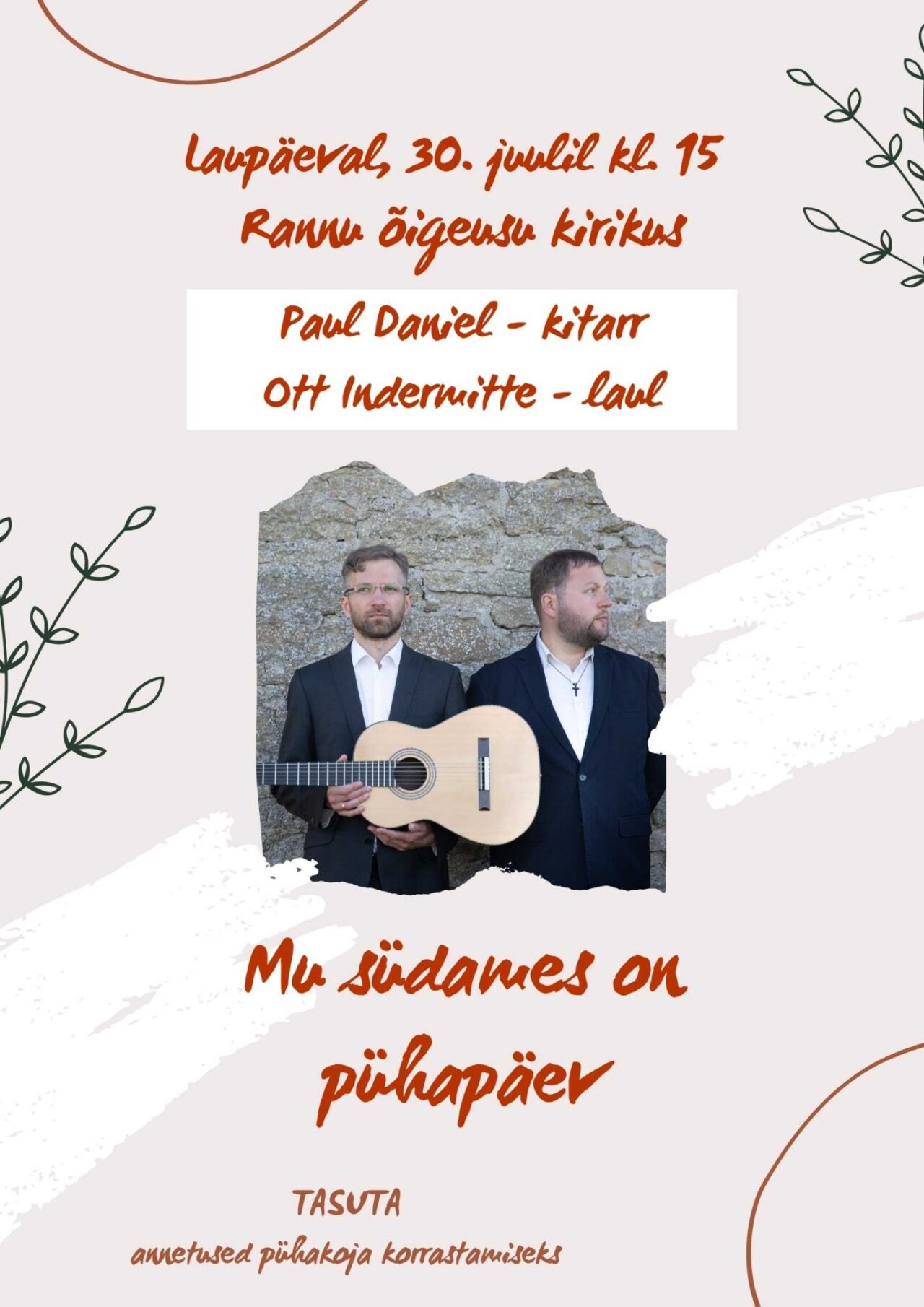 30. juuli kell 15.00 Rannu õigeusu kirikus Ott Indermitte (bariton) ja Paul Danieli (kitarr) kontsert.