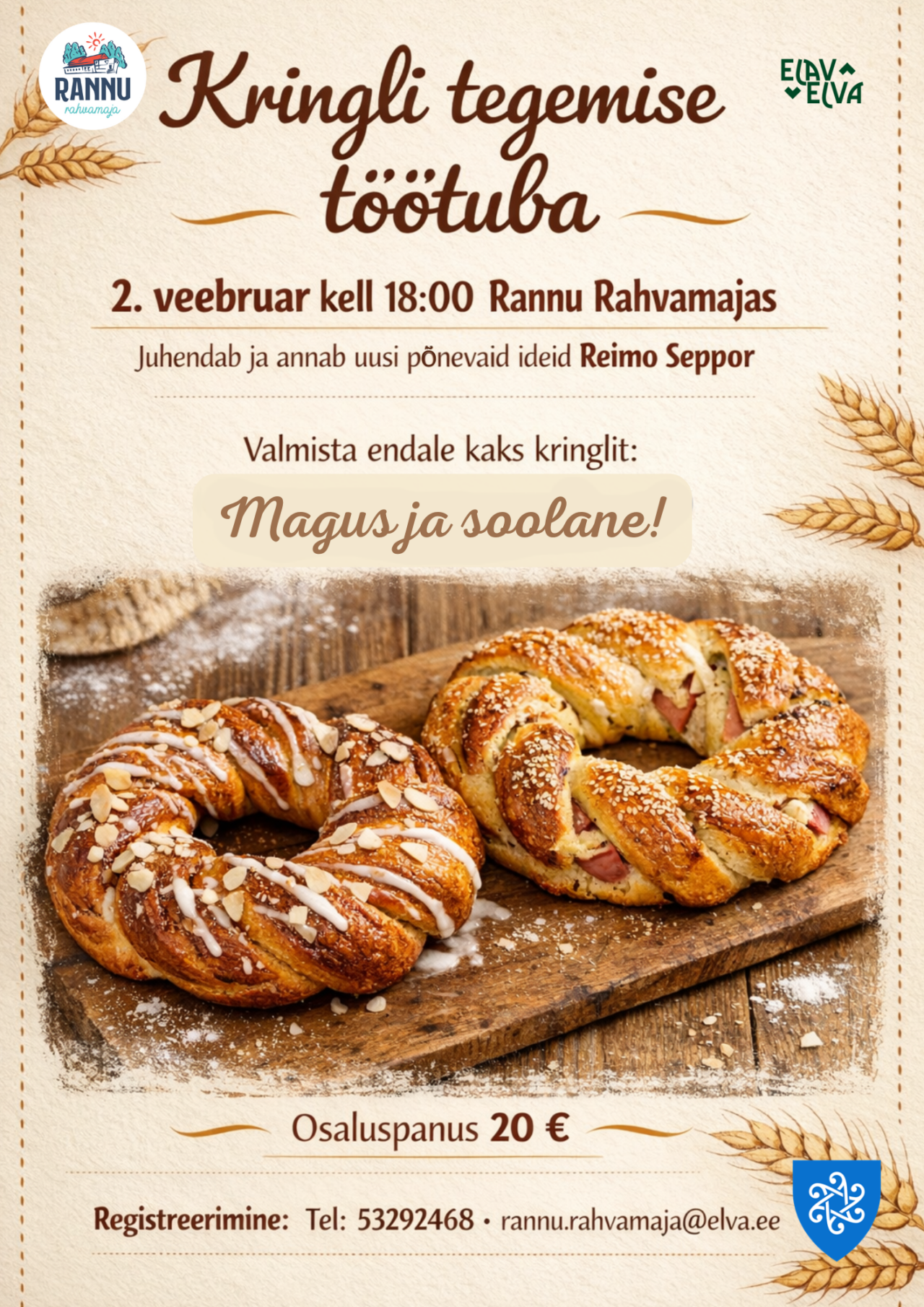 Registreerimine: 5329 2468 E-post: rannu.rahvamaja@elva.ee