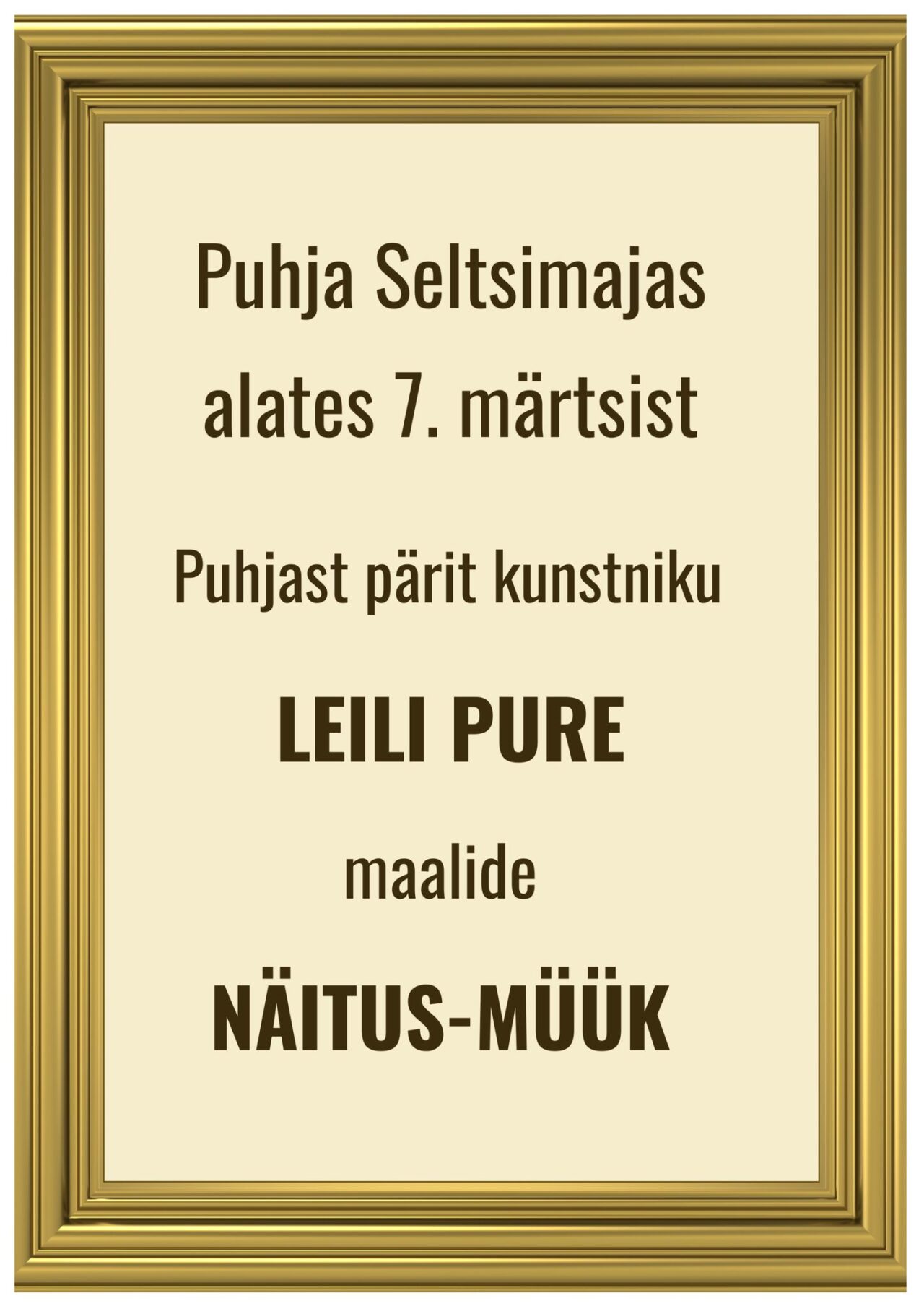 29. märtsil kell 18.00 toimub seltsimajas Ajalootund, mille seekordseks külaliseks on kunstnik Leili Pure. Huvilistel on võimalus osa saada näituse tutvustusest. Samuti kuuleme kunstniku mälestusi lapsepõlve- ja noorusaastatest Puhjas, kunstnikuks kujunemisest ning hilisemast loome- ja eluperioodist.