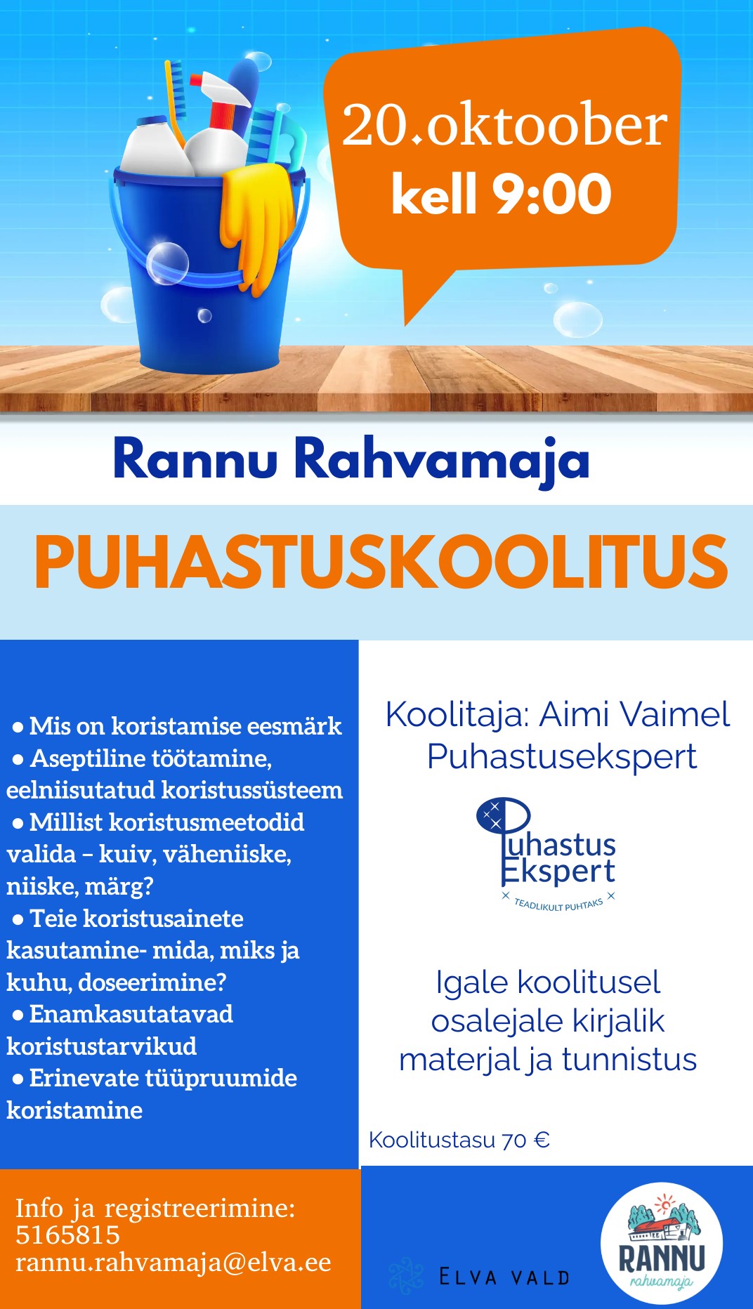 Rannu Rahvamajas on tulemas koolitus, kus õpetatakse tulemusliku koristamise algtõdesid. Koolitus sobib asutuste koristajatele ning ka nendele huvilistele, kes soovivad tulemuslikumalt ning minimaalse vahendite hulgaga koristada. Koolitus annab palju praktilisi nippe.