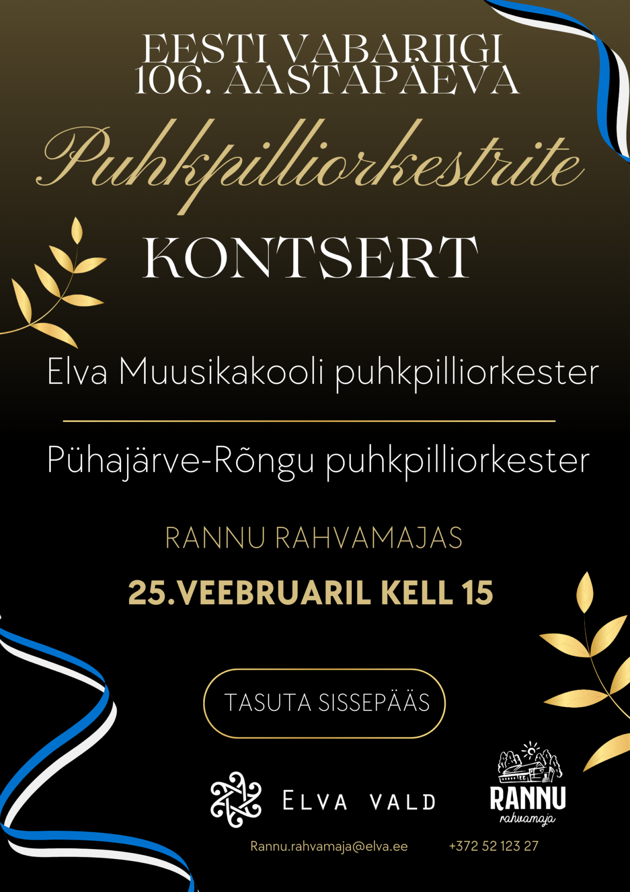 Eesti Vabariigi 106. aastapäeva tähistame Rannu Rahvamajas puhkpilliorkestrite kontserdiga.