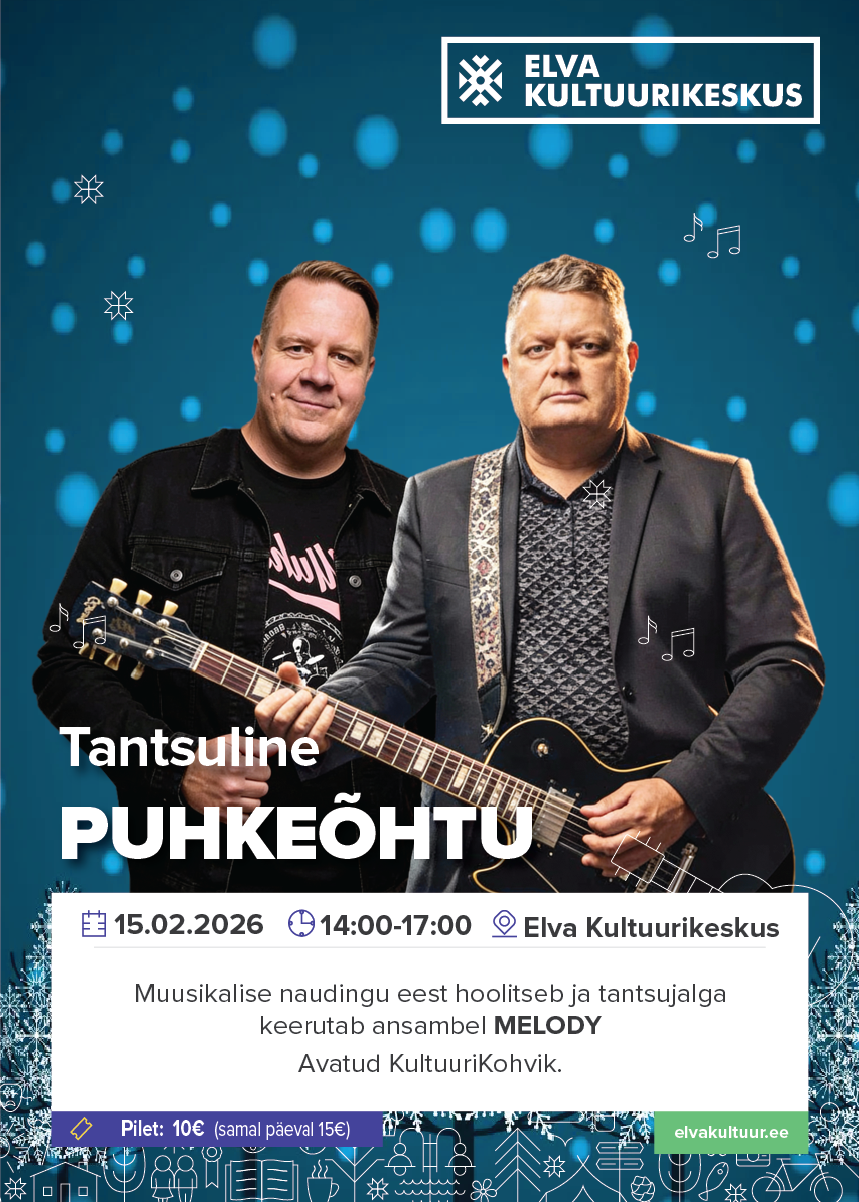 Elva Kultuurikeskus kutsub tantsulisele pärastlõunale. Tantsumuusikat teeb ansambel Melody.