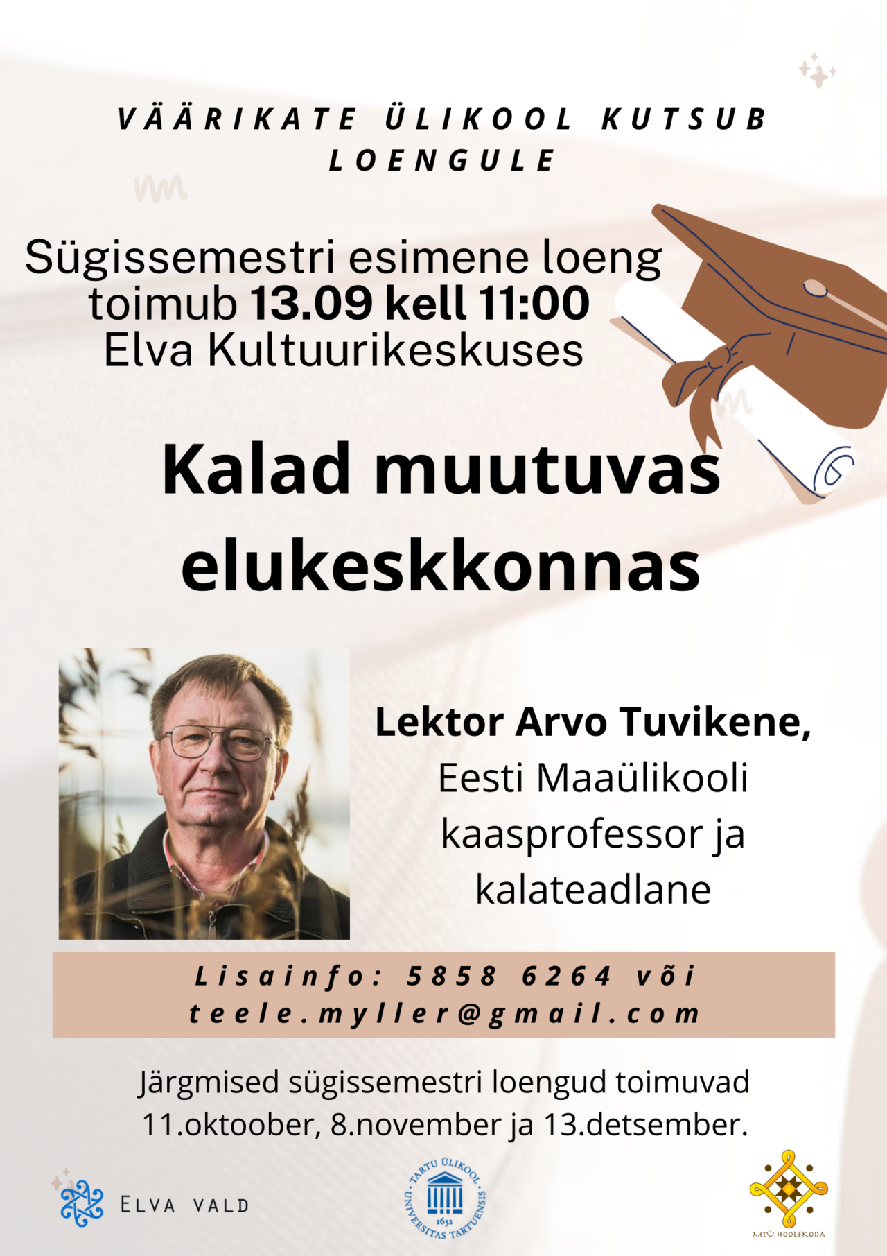 Sügissemestri esimese loengu lektor on Arvo Tuvikene, Eesti Maaülikooli kaasprofessor ja kalateadlane.