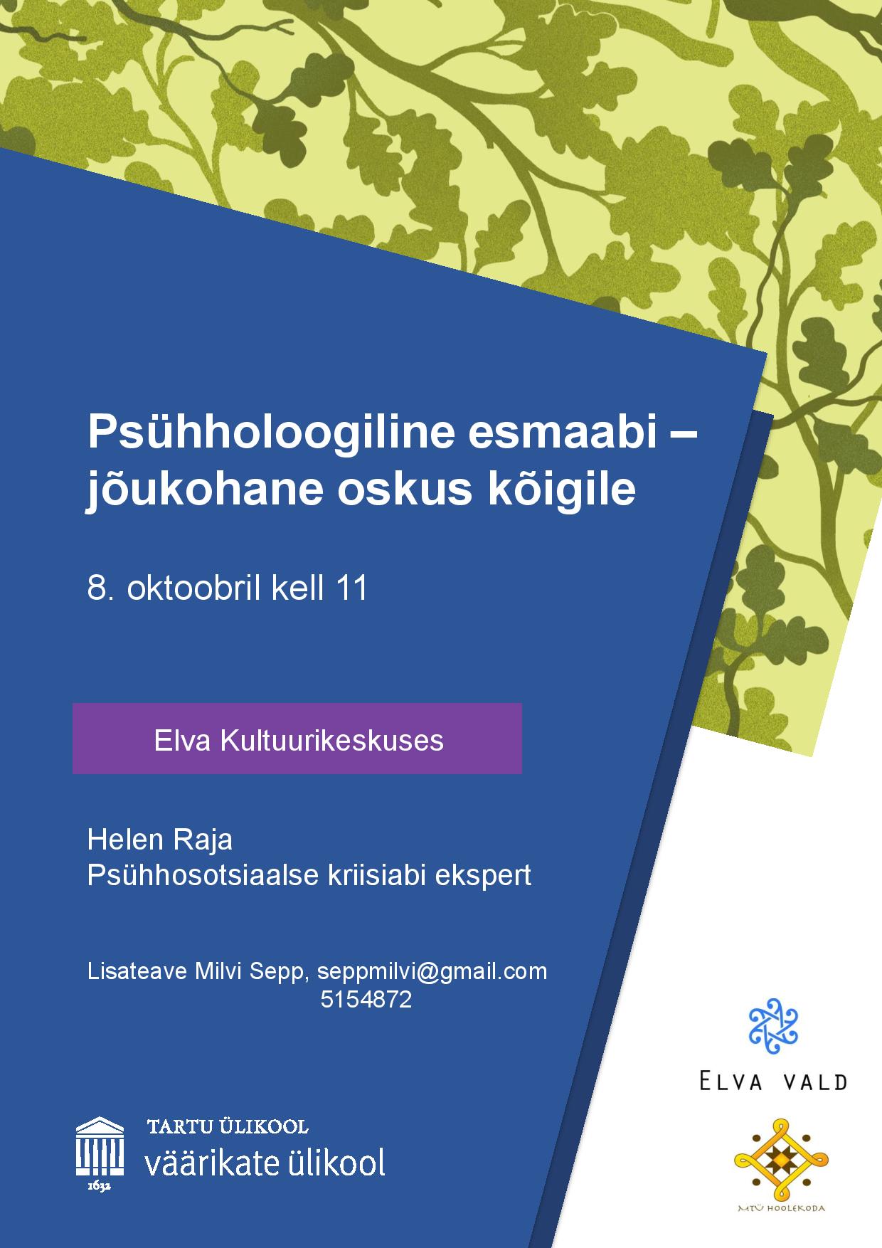 Oktoobrikuu loeng – Psühholoogiline esmaabi – jõukohane oskus kõigile