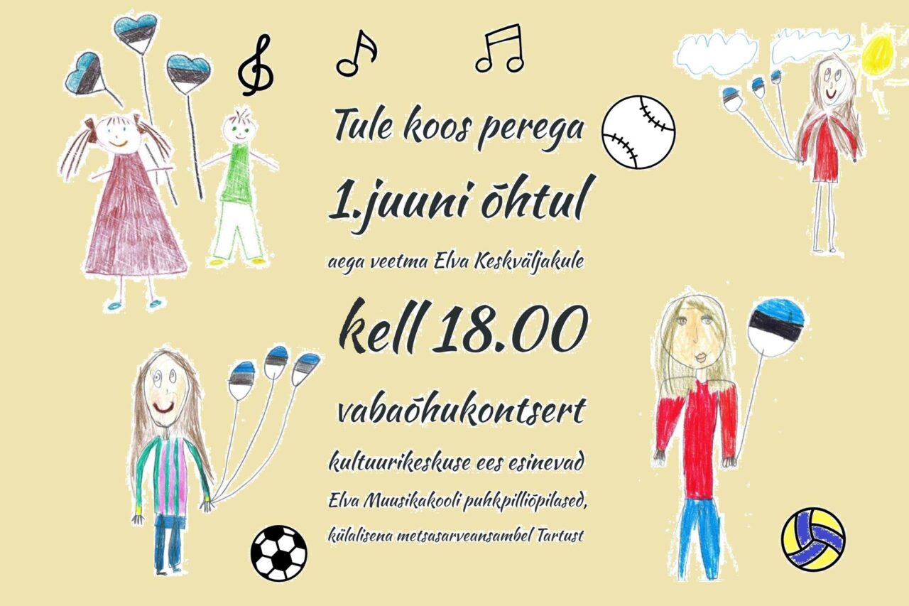 Kultuurikeskuse ees esinevad Elva muusikakooli puhkpilliõpilased ja külalisena metsasarveansambel Tartust.