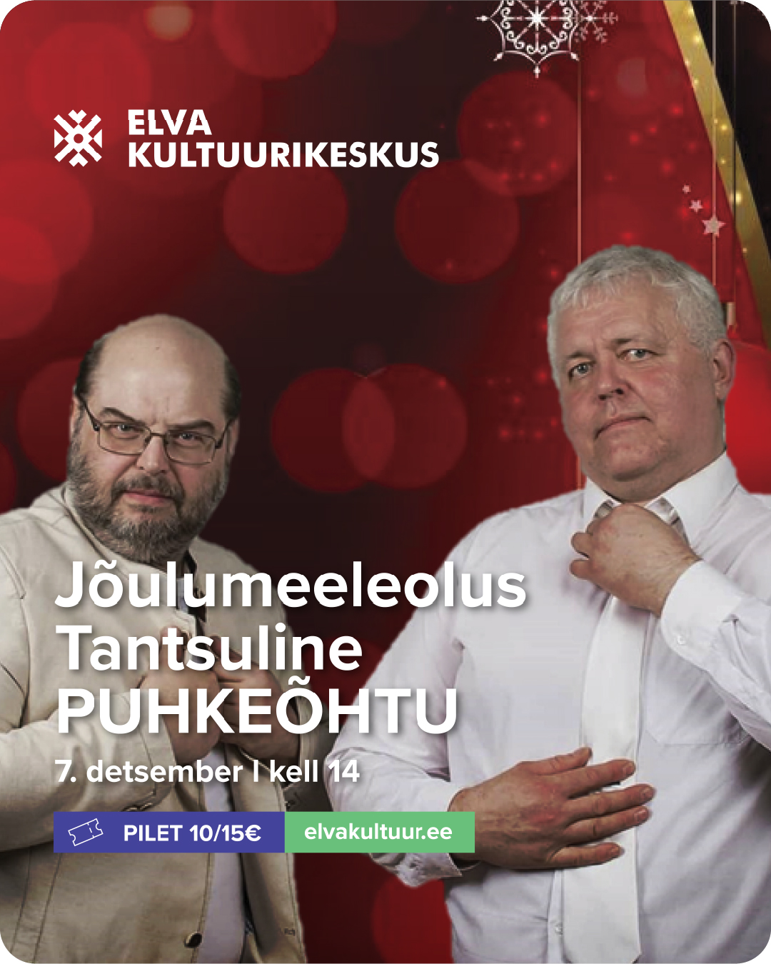 📅 19.12.2025 🕙 kell 20.00 🎟️ 25€ (samal päeval 35€) 📍 Elva Kultuurikeskus