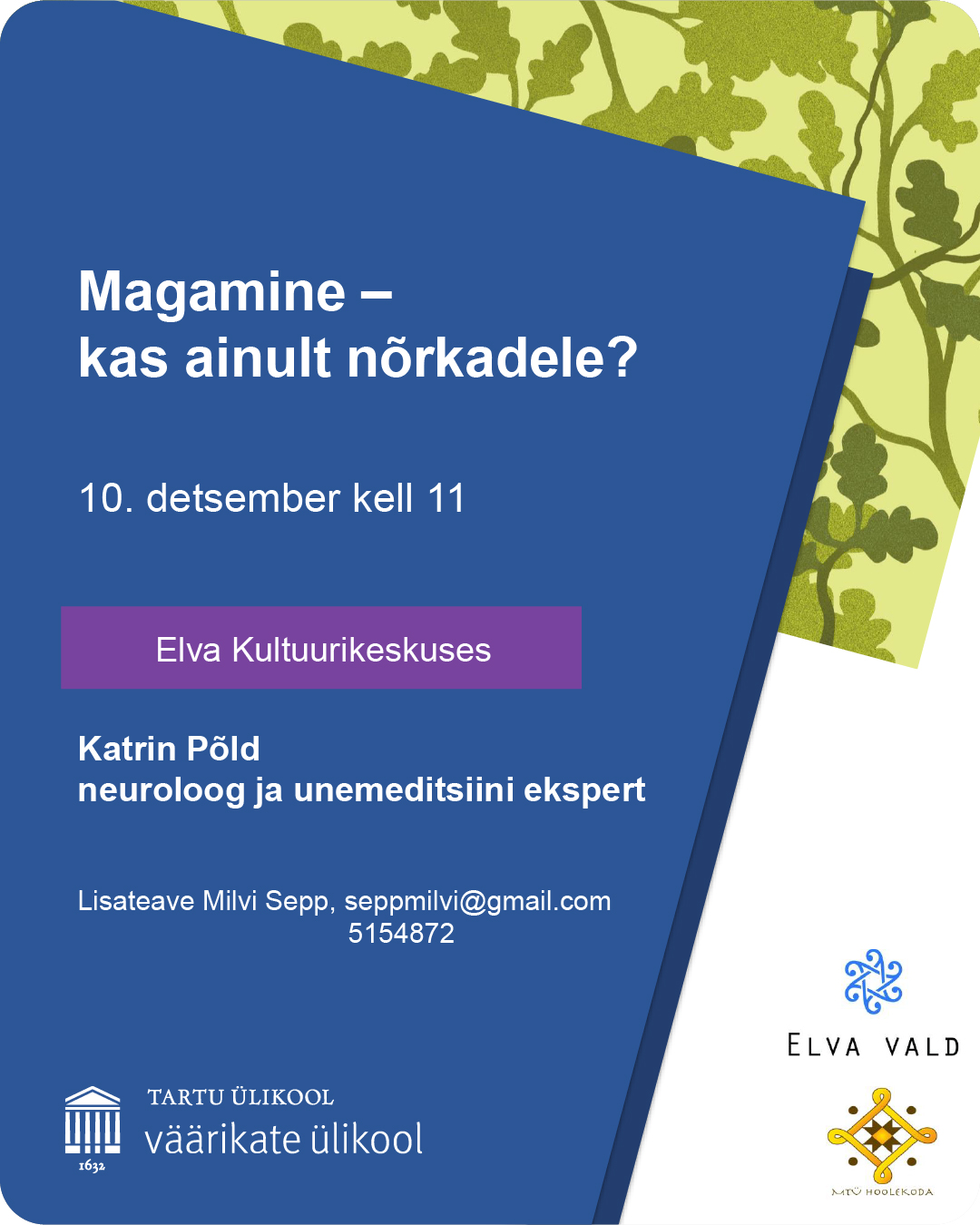 Detsembrikuu loeng – Magamine – kas ainult nõrkadele?Lektor Katrin Põld, neuroloog ja unemeditsiini ekspert