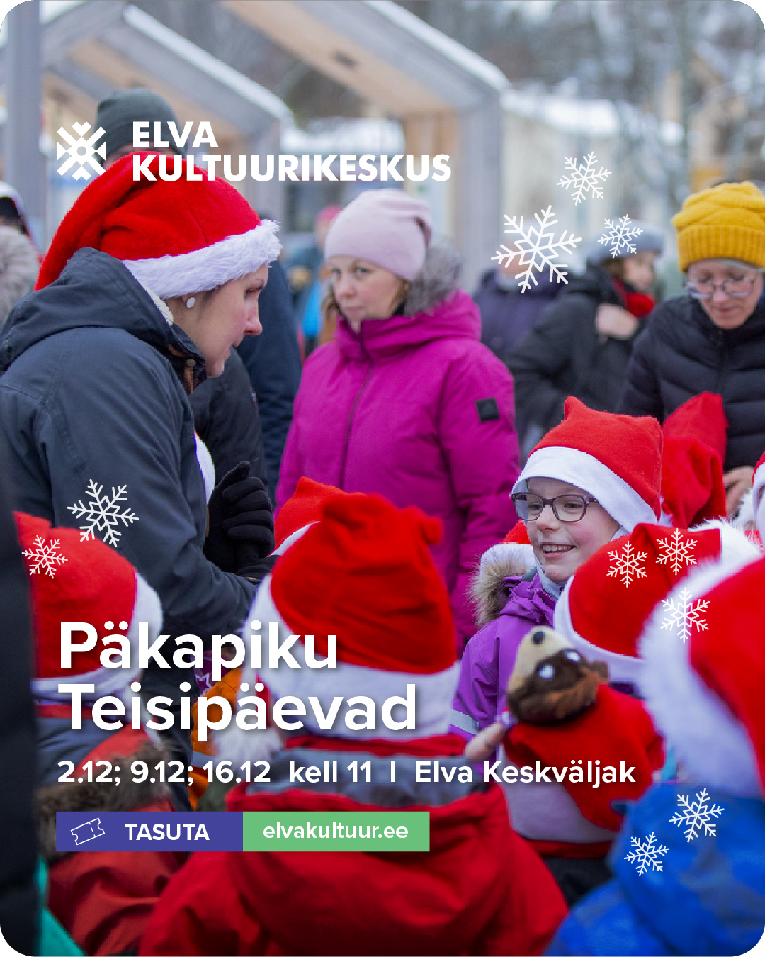 📅 02., 09., 16.12.2025 🕙 kell 11.00 🎟️ Tasuta! 📍 Elva keskväljak